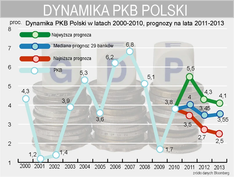 Do tej pory Polska była gospodarczą gwiazdą w Unii Europejskiej - jako jedyna gospodarka zdołała uniknąć recesji. Po wybuchu globalnego kryzysu w 2008 r. inwestorzy rzucili się na polskie papiery skarbowe dokonując rekordowych zakupów obligacji. W ciągu dwóch lat do lipca 2011 r., inwestorzy zwiększyli swoje zaangażowanie w polskie papiery z 80,3 mld zł do 147,2 mld zł – wynika z danych resortu finansów. Odkąd gabinet Tuska doszedł do władzy w 2007 roku, polska gospodarka rozwijała się w średnim tempie 4,4 proc. rocznie. Unijna gospodarka rosła w tym czasie zaledwie o 0,1 proc. rocznie.
