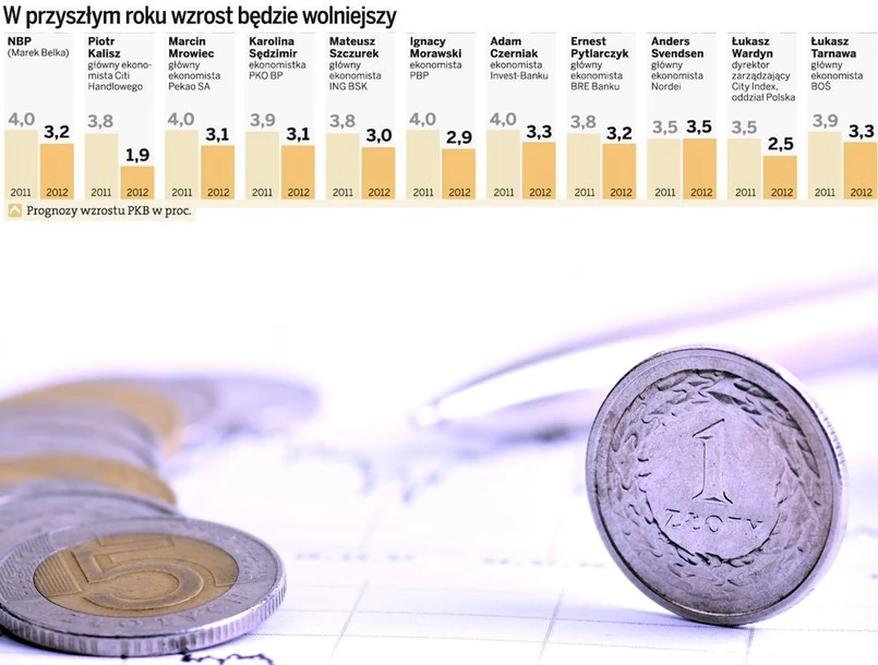 To dosyć optymistyczny pogląd, choć nadal podziela go kilku ekonomistów, w tym Adam Czerniak z Invest-Banku. Ale także on spodziewa się znacznego spowolnienia w czwartym kwartale – do 3,4 proc. Uważa, że najgorszy będzie początek przyszłego roku, kiedy wzrost PKB spowolni do 2,7 proc., a w całym 2012 r. do 2,9 proc.