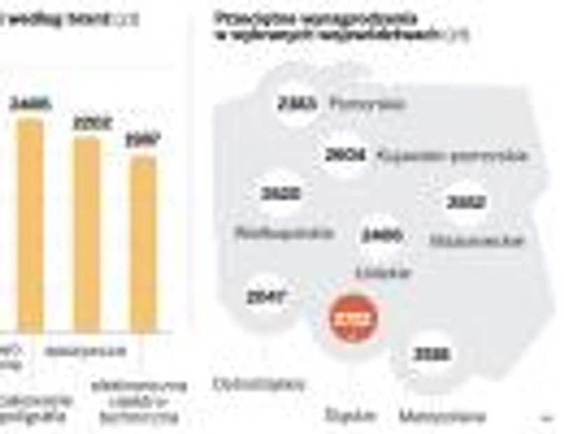 Do najlepiej opłacanych pracowników należą zatrudnieni w branży chemicznej. Zarobki połowy z nich przekroczyły 2997 zł, a co czwarty otrzymywał ponad 3580 zł miesięcznie. Najmniej zarabiają natomiast osoby zatrudnione w sektorach elektronicznym i elektrotechnicznym. Połowa z nich otrzymuje mniej niż 1987 zł.