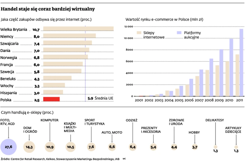 Specjaliści uważają, że w ekspansji tego typu handlu ubiegły rok był przełomowy. Liczba sklepów przekroczyła 10 tys., a obroty – 1,5 mld zł. Z badań przeprowadzonych przez monitorującą rynek firmę IAB Polska wynika, że mimo trudniejszego okresu w gospodarce aż 40 proc. e-sklepów zwiększyło obroty, a niemal jedna trzecia – zyski.