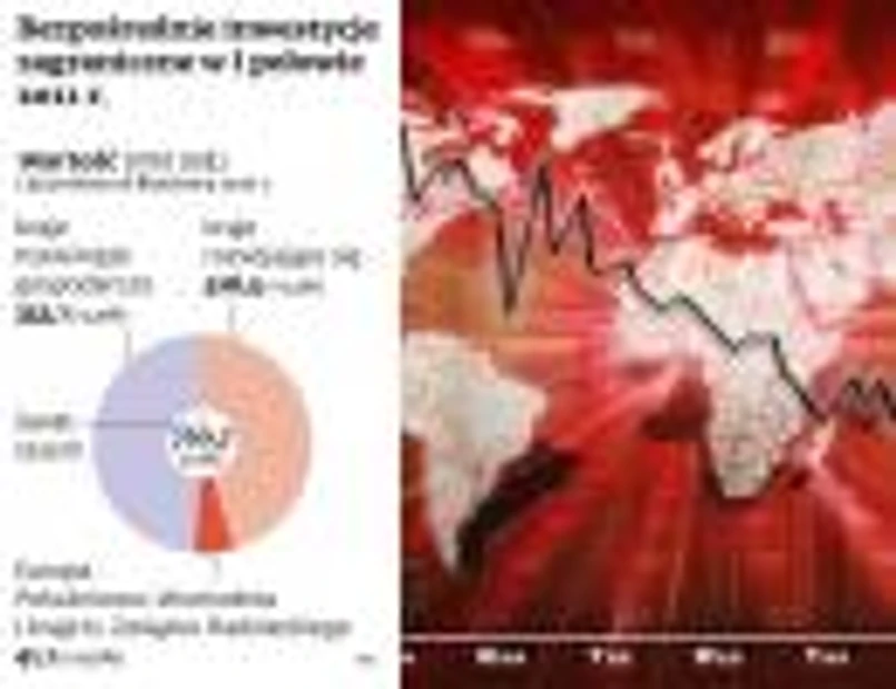 W pierwszej połowie tego roku bezpośrednie inwestycje zagraniczne wyniosły na całym świecie 720,7 mld dol., co oznacza dwuprocentowy wzrost w porównaniu z drugim półroczem ubiegłego roku. Ale jest to efekt większego zaangażowania kapitałowego w krajach rozwijających się (326,5 mld, wzrost o 7,3 proc.) oraz państwach Europy Południowo-Wschodniej i byłego Związku Radzieckiego (41,1 mld, wzrost o 17,6 proc.). Kraje rozwinięte, do których UNCTAD zalicza także środkowoeuropejskich członków UE, zanotowały w tym czasie spadek o 3,9 proc. – do 353,1 mld dol.