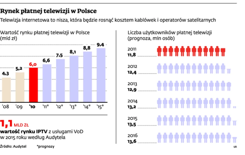 Na wszelki wypadek kablówki i platformy uruchamiają własne rozwiązania. UPC Polska oferuje ponad 543 tys. klientów internetu usługę UPC Live. Cyfrowy Polsat uruchomił Catch up TV, a Multimedia Polska MMTV.pl. Alena Blahovcova z Chello Central Europe podkreśla, że to będzie rok telewizorów podłączonych do sieci. – Jako nadawcy powinniśmy jednak ostrożnie podchodzić do tego rynku – przestrzega. Powód jest prosty. Stacje najwięcej zarabiają dziś na opłatach od operatorów kablowych i satelitarnych, którzy płacą im za możliwość pokazywania ich programów. Producenci telewizorów nie płacą i raczej nie będą tego robić.
