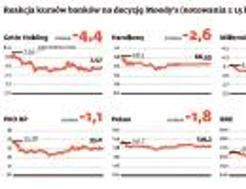 Decyzja Moody’s spowodowała m.in. spadki cen akcji największych banków. PKO BP i Pekao traciły wczoraj ponad 1 proc., a Getin – przeszło 4,5 proc. Stało się tak, mimo że wszyscy sobie zdają sprawę, iż ratingi polskich banków wkrótce mogą pójść w dół. Wszystko przez kłopoty ich właścicieli. W ubiegłym miesiącu agencje obniżyły oceny m.in. hiszpańskiego Santandera, francuskich BNP Paribas czy Credit Agricole.