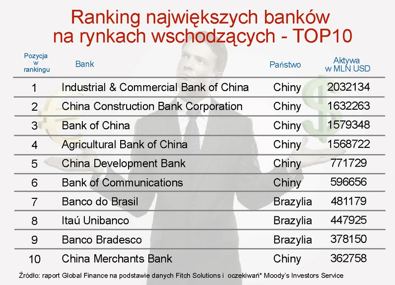 Zdecydowana większość banków z zestawienia to reprezentanci państw należących do grupy BRIC (Brazylia, Rosja, Indie i Chiny) – banki z tych państw zajmują 17 z 20 pierwszych miejsc w rankingu.