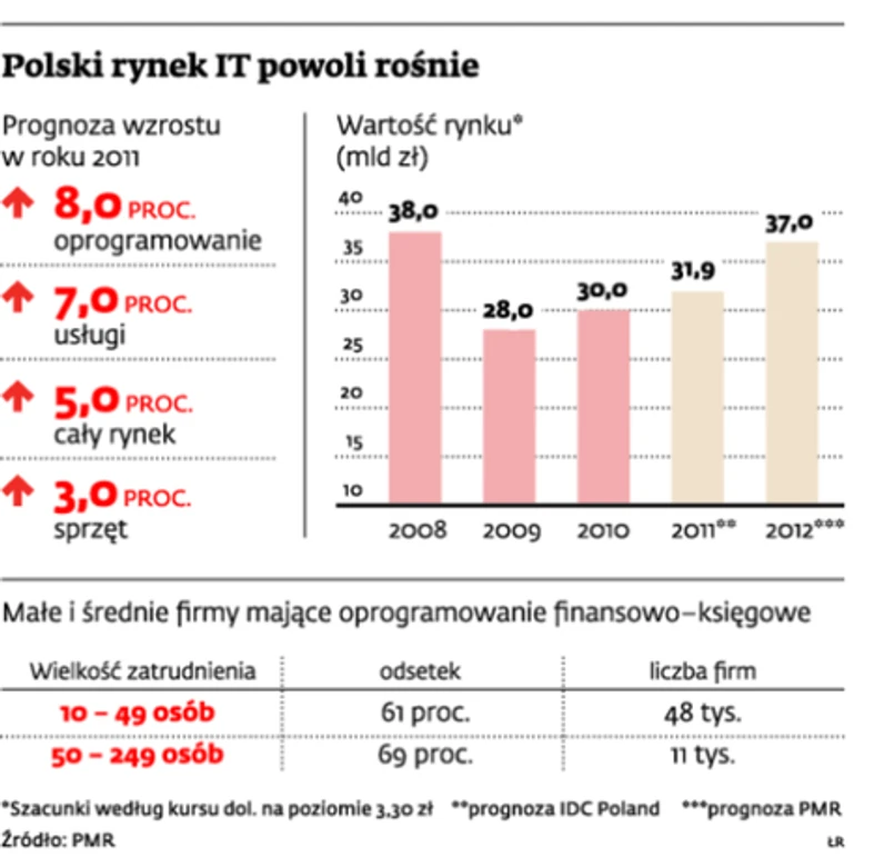 Z badań wynika, że obecnie przedsiębiorstwa zatrudniające do 10 osób najczęściej wykorzystują oprogramowanie kupowane z zestawem komputerowym. Z danych PMR opartych na badaniu 800 firm wynika, że poza standardowym oprogramowaniem biurowym i antywirusowym innymi najczęściej stosowanymi aplikacjami są programy finansowo-księgowe. Teraz mogą z nich korzystać w chmurze.