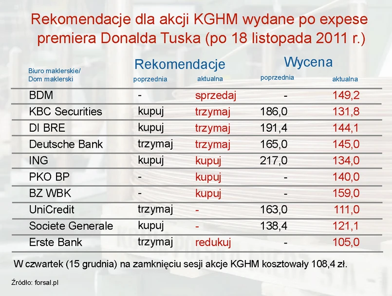 Zobacz, jak oceniają akcje miedziowej spółki analitycy. Forsal.pl zebrał rekomendacje biur i domów maklerskich wydane od momentu wygłoszenia expose premiera do dziś.