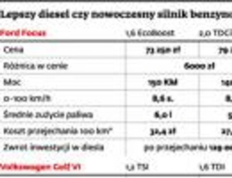Nowoczesne jednostki benzynowe zużywają o zaledwie 20 – 30 proc. więcej paliwa niż porównywalne pod względem osiągów diesle. Jednak równocześnie są zdecydowanie tańsze w zakupie niż one. Dodatkowo na ich korzyść przemawia to, że ON od kilku tygodni jest droższy niż tradycyjna bezołowiówka i eksperci przewidują, że tak zostanie już na zawsze. Wszystko to sprawia, że to już nie diesel jest alternatywą dla benzyny, lecz właśnie silnik benzynowy dla diesla. Inwestycja w auto napędzane nowoczesnym benzyniakiem może okazać się lepszym wyborem nawet dla niektórych firm. Szczególnie tych, które wymieniają flotę co 2-3 lata, a autami przejeżdżają nie więcej niż 30 tys. km rocznie.