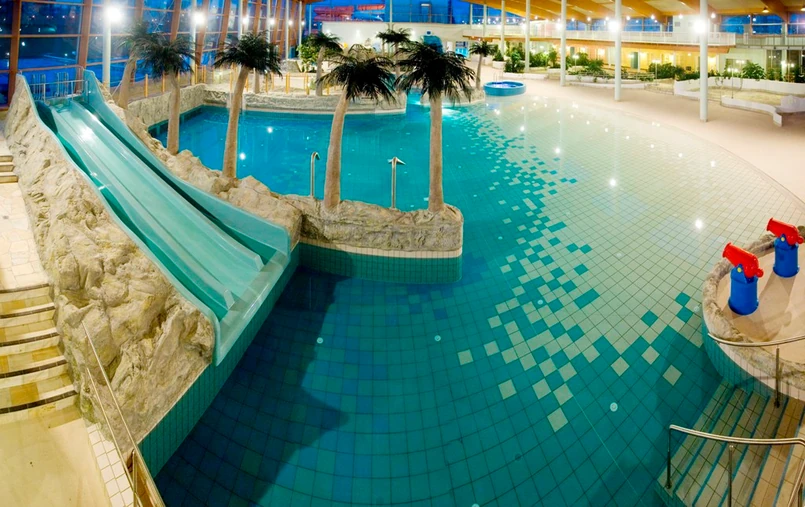 Znajdzie się w nim m.in. hala basenowa ze zjeżdżalniami, sztuczną rwącą rzeką i sztucznymi falami, basen sportowy, kilka rekreacyjnych tarasów, jacuzzi i SPA. Lustro wody mieć będzie łączną powierzchnię 1634 m kw. Obok obiektu powstanie parking na ok. 350 pojazdów.