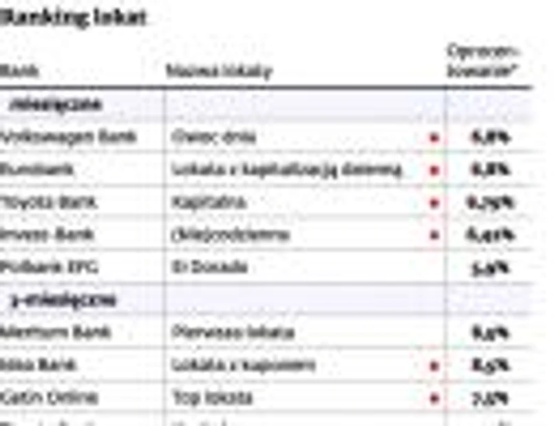 Z kolei wśród depozytów o terminie zapadalności wynoszącym rok prym wiedzie Toyota Bank, który na lokacie Kapitalnej pozwala zarabić 7,59 proc. rocznie. Nieco gorzej prezentuje się FM Bank oferujący 7,5 proc. i Santander, który daje zarobić 7 proc. na lokacie Zysk+Doskonała.