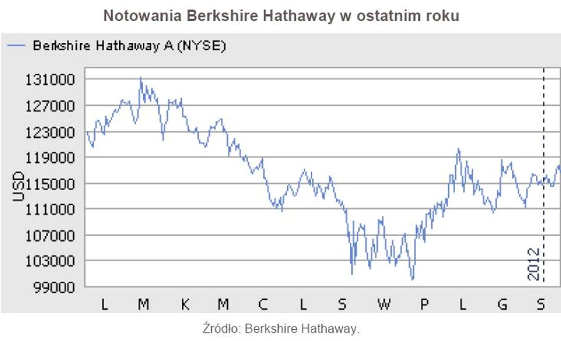 Po trzech kwartałach 2011 roku zysk netto Berkshire wyniósł 4,4 mld dolarów i był o 17 proc. niższy niż po dziewięciu pierwszych miesiącach 2010 roku. To pochodna zmian wartości akcji spółek, znajdujących się w portfelu Berkshire. O ile jego skład przez wiele lat był dość stabilny, to od czasu globalnego kryzysu finansowego zmienia się znacznie bardziej dynamicznie. Trudno te zmiany pogodzić z konserwatywnymi, fundamentalnymi zasadami, do jakich przyzwyczaił inwestorów Warren Buffett, lub jakie są mu przypisywane przez media. Nie sposób przy pomocy typowych dla wyroczni z Omaha kryteriów wyjaśnić powody, dla których zaangażował duże pieniądze w akcje takich firm jak Goldman Sachs, czy wydawców tradycyjnych gazet, jak Washington Post, czy lokalnej Omaha World-Herald. Można przypuszczać, że guru w swych decyzjach coraz bardziej kieruje się nie kryteriami, którym był wierny przez kilkadziesiąt lat, lecz względami koniunkturalnymi i lokalnym sentymentem (zainwestował też w kilka firm z rejonu, w którym mieszka). Nie stronił ostatnio od okazji, jakie stwarzała kapryśna koniunktura na rynkach finansowych. Być może to właśnie było przyczyną gorszych wyników spółki inwestycyjnego guru.