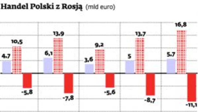 W pierwszych jedenastu miesiącach 2011 r. polskie firmy sprzedały do Rosji towary warte blisko 5,7 mld euro. Było to o 23,8 proc. więcej niż w tym samym okresie rok wcześniej, podczas gdy eksport do krajów Unii Europejskiej zwiększył się o 11,4 proc., a do strefy euro tylko o 9,9 proc. – wynika z najnowszych danych GUS. Wzrost grudniowy był najprawdopodobniej równie imponujący, a to oznacza, że wartość całorocznego eksportu do naszego największego partnera na Wschodzie przekroczyła 6,2 mld euro. Tym samym pobity został rekord z 2008 roku, gdy eksport zamknął się kwotą 6,1 mld euro. To nie przypadek.