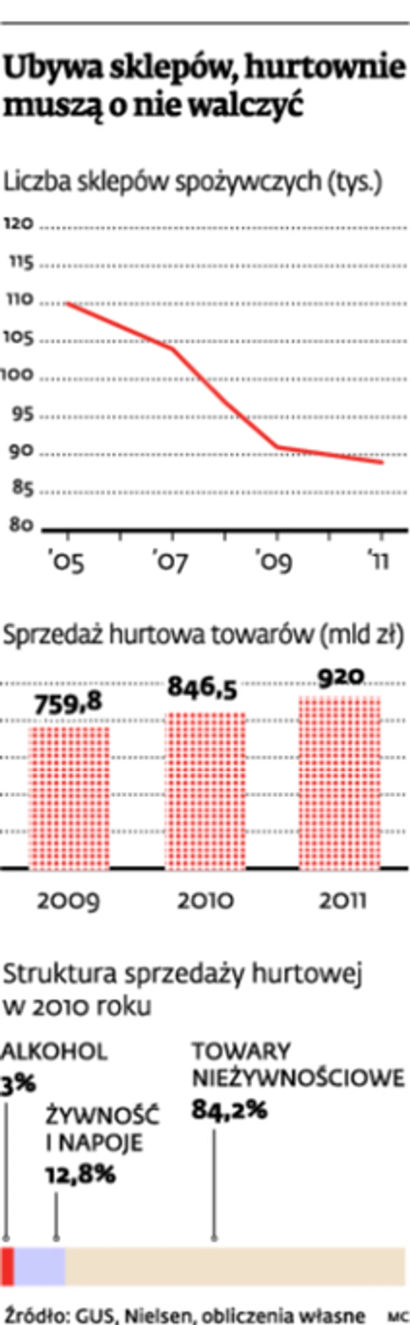 Rynek handlu hurtowego przestraszył się bowiem statystyk mówiących o tym, że coraz więcej małych, działających samodzielnie sklepów przegrywa walkę o klienta z wielkimi sieciami i znika z handlowej mapy Polski. Co roku ubywa ich 3 – 4 tys. Z ponad 110 tys. w 2005 roku zostało ich już mniej niż 90 tys. Równolegle zmniejsza się rynek hurtowy, zwłaszcza że na współpracę z zachodnimi sieciami hiper- i supermarketów hurtownie nie mają co liczyć, bo te rozwijają własne centra dystrybucyjne. Przykładem jest Biedronka, która ma ich już dziewięć i planuje budowę kolejnych dwóch – w Lubartowie i Sieradzu.