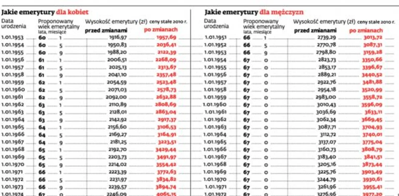 Projekt w wersji rządowej koncentruje się tylko na zapisach podnoszących wiek. Zmienione zostały inne, które mogły budzić dodatkowe kontrowersje. Tak się stało z pomysłem, by już od 2013 roku skokowo podnieść do 67 lat granicę wieku, w którym emeryt może bez ograniczeń dorabiać do emerytury. Według obecnej wersji ta granica ma być przesuwana równolegle do podnoszenia wieku emerytalnego. Upadły pomysły na podniesienie wieku uprawniającego do tzw. rent wdowich. – Premier zdecydował, by usunąć wszystkie zapisy mogące utrudnić przyjęcie ustawy – mówi jedna z osób przygotowujących projekt. W projekcie nie ma też pomysłów PSL skracania wieku emerytalnego dla matek. Ludowcy nie zamierzają jednak rezygnować i niewykluczone, że na etapie prac sejmowych dojdzie do ponownych ostrych negocjacji.