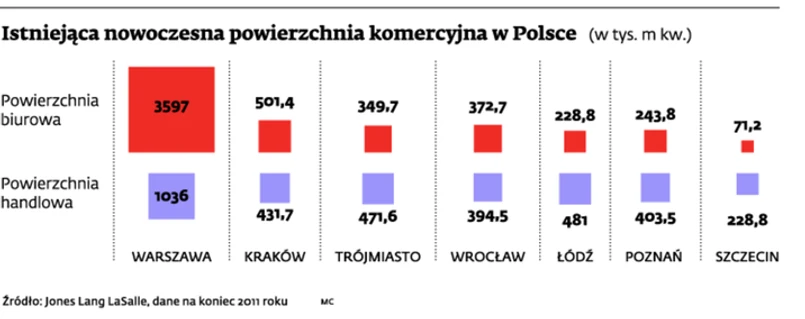 Ambitne plany wobec rynku komercyjnego ma też J.W. Construction, jeden z największych polskich deweloperów mieszkaniowych. Firma w 2011 r. przygotowywała siedem projektów: biurowych, handlowych i hotelowych, o łącznej powierzchni 173,14 tys. mkw.