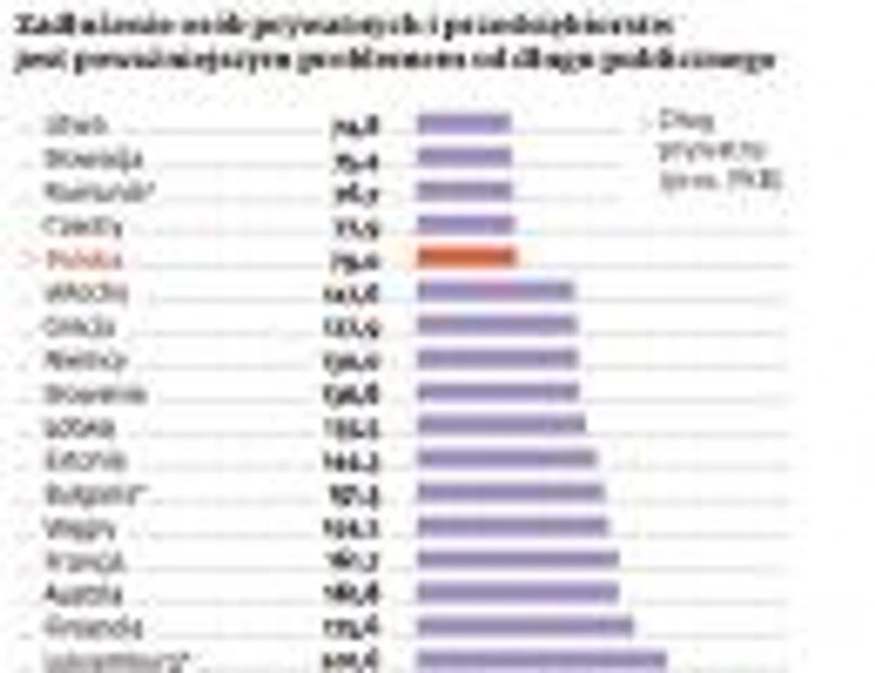 Z opublikowanych w tym tygodniu przez Eurostat danych za III kwartał ub.r. wynika, że największy problem z długiem zgromadzonym przez gospodarstwa domowe i prywatne przedsiębiorstwa ma Irlandia. To już astronomiczna suma 341 proc. PKB. Jednak także w kilku innych krajach strefy euro dług prywatny jest dwu-, a nawet trzykrotnie większy niż zobowiązania publiczne. W Belgii wynosi on 231 proc. PKB, w Portugalii 247 proc., w Hiszpanii 218 proc., a we Francji 161 proc. Powody do niepokoju ma także Szwecja z długiem prywatnym odpowiadającym 237 proc. PKB i Wielka Brytania z podobnym obciążeniem wartym 212 proc. PKB.