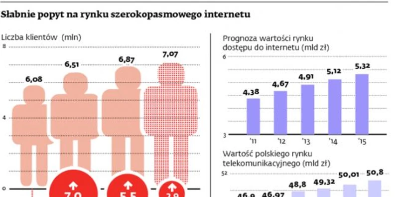 Taki krok wymusiło na Netii spowolnienie na rynku szerokopasmowego internetu. Rósł on dotychczas bardzo dynamicznie, ale w ubiegłym roku dostał zadyszki. Wszyscy operatorzy pozyskali, według różnych szacunków, od 250 do 300 tys. nowych klientów. W przeszłości takie wyniki osiągało się kwartalnie. Zdaniem analityków powód jest prosty: dochodzi do nasycenia w grupie klientów, których stać na droższe usługi. Z szacunków wynika, że w tym roku rynek wzrośnie o ok. 3 proc., podczas gdy w 2011 r., było to o 5,5 proc.