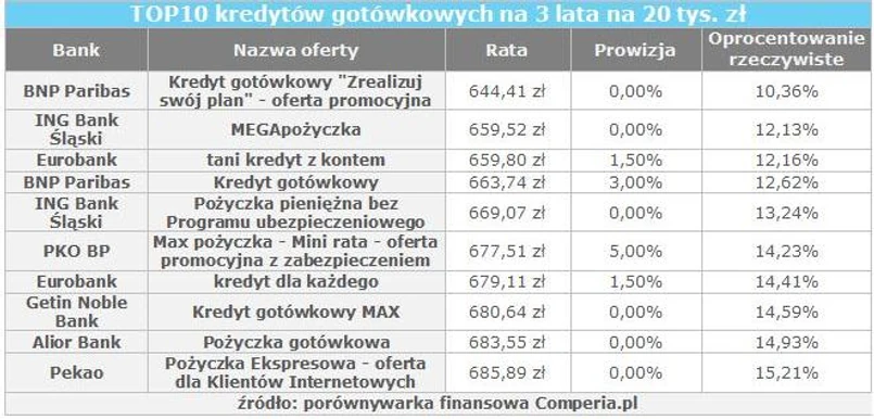 Między innymi na BNP Paribas i ING Bank Śląski można liczyć także w przypadku większych kredytów, np. na remont mieszkania czy samochód używany. Analitycy Comperia.pl przyjęli kwotę kredytu na poziomie 20 tys. zł, oraz 3-letni okres spłaty. W BNP Paribas w ramach promocji nie jest pobierana prowizja za udzielenie kredytu, o ile wnioskujący posiada lub założy rachunek osobisty w Pakiecie L. Z drugiej strony, do każdej raty będzie doliczana także składka ubezpieczeniowa w wysokości 2,99 proc.. Niezależnie jednak od wszystkiego, to jedna z najlepszych ofert na rynku. Atrakcyjne oferty znajdziemy także m.in. w eurobanku, PKO Banku Polskim i Getin Noble Banku.