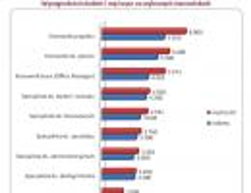 Kobiety zatrudnione na stanowisku specjalistów w mikro firmach otrzymywały wynagrodzenie w wysokości 2 560 zł., czyli o 340 zł mniej niż wynagrodzenie mężczyzn w firmach tej wielkości (mediana 2 900 zł). Im większa firma, tym większa różnica - w przypadku firm zatrudniających powyżej 1 000 pracowników sięgała już 611 zł. Na stanowisku kierowniczym kobiety zatrudnione w największych firmach zarabiały 5 700 zł, podczas gdy mężczyźni otrzymywali wynagrodzenie w wysokości 7 000 zł.