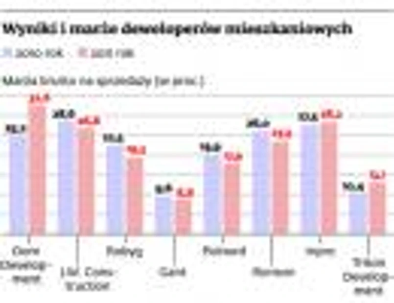 To poziom taki sam jak w 2010 r. W zestawieniu DGP, obejmującym wyniki ośmiu deweloperów notowanych na GPW, marże brutto spółek na sprzedaży wahały się w przedziale od 8,8 proc. do ponad 32,6 proc. Ten wskaźnik pokazuje rentowność sprzedanych projektów po odliczeniu twardych kosztów, czyli zakupu działki, projektu, materiałów budowlanych, i generalnego wykonawstwa oraz kosztu kapitalizowanych odsetek od kredytu na finansowanie inwestycji.