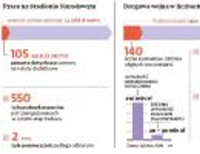 Dlaczego na Narodowym roboty trwają w najlepsze, choć powinny się dawno zakończyć? Powodem są m.in. poprawki wad konstrukcyjnych. Jedne z poważniejszych zmian były przeprowadzane w elektryce. Do instalacji sporo uwag miała UEFA. W efekcie – jak opowiadają robotnicy – trzeba było pruć ściany nośne. Wzmacniano także konstrukcję schodów prowadzących na stadion. Wykonawcy musieli również uszczelnić stopnice, dochodziło bowiem do zalewania pomieszczeń.