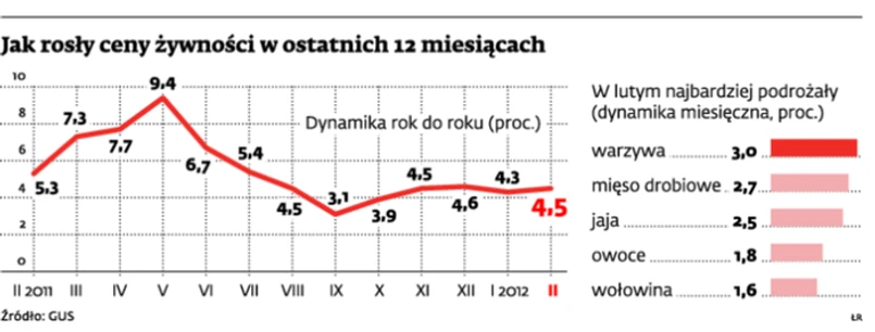 Nasi rozmówcy wymieniają kolejne towary, których ceny mogą rosnąć. Przede wszystkim owoce i warzywa. To zjawisko sezonowe – zazwyczaj drożeją wiosną, gdy kończą się zapasy z poprzedniego roku, a nowych zbiorów jeszcze nie ma. Michał Kolesznikow szacuje, że za cztery miesiące możemy płacić za nie nawet 10 proc. więcej niż dziś. Kolejny produkt, którego cena pójdzie w górę, to pieczywo. Krystyna Świetlik uważa, że bezpośredni wpływ na to będzie miała podwyżka gazu, która wejdzie w życie w kwietniu. Ekonomistka zwraca uwagę na jeszcze jeden problem: malejąca podaż niektórych produktów żywnościowych może zderzyć się z wyższym popytem w pierwszym półroczu tego roku. – Trzeba spodziewać się dużego napływu kibiców w czerwcu z okazji Euro 2102. We wszystkich krajach, które organizowały podobne imprezy, następował wzrost cen żywności wywołany zwiększonym popytem. U nas będzie podobnie – mówi Krystyna Świetlik.