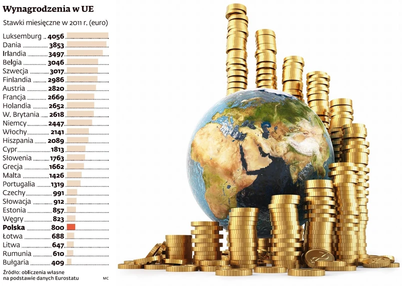 Jak dotąd udało się nam prawie zrównać z poziomem przeciętnych zarobków na Węgrzech, chociaż tam były one przed sześciu laty o 130 euro wyższe. Nadal jednak lepiej od nas opłacani są Czesi z pensjami wyższymi o 190 euro i Słowacy, którzy otrzymują o 110 euro więcej. Za to zarabiamy w Polsce dwa razy więcej niż Bułgarzy, o 190 euro więcej niż Rumuni i o 150 euro więcej niż Litwini.