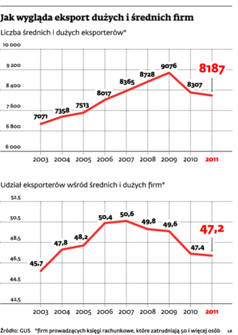 – Można oczekiwać, że niebawem wzrośnie liczba firm eksportujących, ponieważ spodziewana jest poprawa koniunktury w strefie euro w drugiej połowie tego roku i polskie przedsiębiorstwa prawdopodobnie tego nie przegapią – twierdzi Bujak. Ponadto, jak co roku, pojawią się u nas kolejne firmy z kapitałem zagranicznym. A ich inwestycje związane są na ogół nie tylko z dostawami na rynek krajowy, lecz także ze sprzedażą za granicę, często w ramach sieci korporacji międzynarodowych.