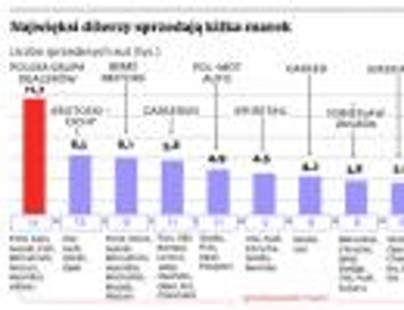 Teraz rzadko który diler żyje ze sprzedaży jednej marki. Jak wynika z badania Samar i DCG Dealer Consulting, 78 proc. z 50 największych dilerów w Polsce oferuje więcej niż jedną markę. W pierwszej dziesiątce nie ma żadnego dilera, który ma w ofercie tylko jedną markę. Pierwszy, Grupa Auto Wimar z Warszawy, która zajmuje się dystrybucją skody, jest na liście dopiero na 12. miejscu.