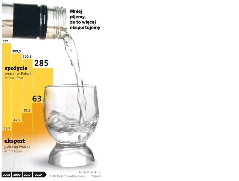 Jak poinformował w czwartek prezes Związku Pracodawców Polski Przemysł Spirytusowy Leszek Wiwała, w 2011 r. sprzedano 40,3 mln litrów wódki, podczas gdy rok wcześniej było to 37,5 mln l.