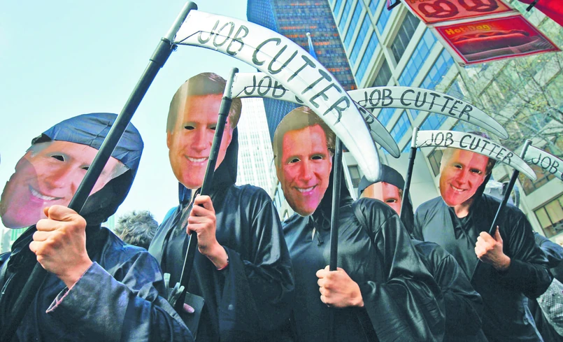 Jednak z punktu widzenia polityki biznesowa biografia Romneya to miecz obosieczny. Ludzie, którzy stracili pracę w firmach po restrukturyzacji dokonanej przez Bain, opisują go jako chciwego kapitalistę. Jest wśród nich Randy Johnson, popierany przez Krajowy Komitet Partii Demokratycznej, który opowiedział dziennikarzom, jak on i setki innych zostali zwolnieni, kiedy Bain w latach 90. przejął Ampad – fabrykę w stanie Indiana produkującą artykuły biurowe. – Rodziny pozostały z niczym – mówi.