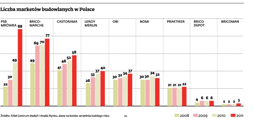 To nie znaczy, że wielkopowierzchniowe sieci DIY należące do zagranicznych graczy nie powalczą już o polskich klientów. Castorama liczy dziś 60 marketów. Do tego dochodzi siedem sklepów Brico Depot. – W tym roku planujemy otwarcie kolejnych sześciu sklepów na terenie całego kraju. W ciągu kilku lat przekroczymy liczbę 100 obiektów – mówi Sławomir Rogowiec z Castorama Polska.