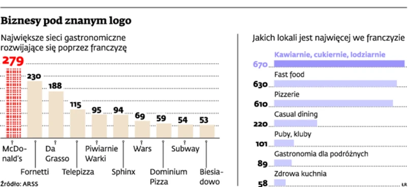 Jeśli nie spełnia się tych warunków, lepiej wejść do galerii za pośrednictwem sieci. A w tej chwili poprzez franczyzę rozwija się blisko 100 marek gastronomicznych. Jest wśród nich coraz więcej tzw. big name, dla których zawsze znajdzie się miejsce w centrach handlowych. Mowa o McDonald’s, SaladStory, Subway czy Sphinksie. Nawiązanie za ich pośrednictwem współpracy z galerią może być o tyle korzystne, że sieć wynegocjuje w naszym imieniu umowę. Jej warunki na pewno będą korzystniejsze niż te uzyskane na własną rękę.