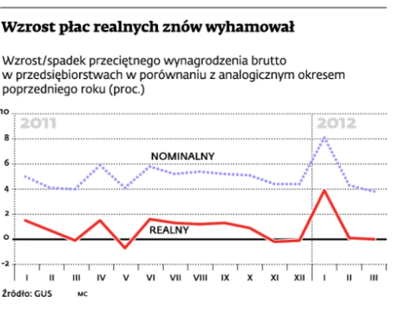 Jakie są perspektywy? – W całym roku wynagrodzenia w sektorze przedsiębiorstw mogą wzrosnąć nominalnie o 4,2 proc., a realnie o 0,2 proc. – ocenia Karolina Sędzimir. Siła nabywcza przeciętnych wynagrodzeń wzrośnie więc mniej niż w ubiegłym roku, gdy zwiększyła się o 0,9 proc. Przy tym jak zwykle jedne branże zyskają więcej, znówbędą i takie, w których realne wynagrodzenia spadną.