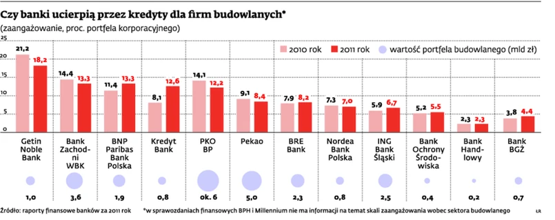 Większość pytanych przez nas banków nie chce komentować swojego zaangażowania w sektor budowlany.