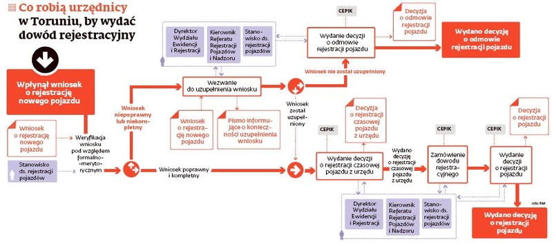 Przykładowo formularz dotyczący rejestracji samochodu w urzędzie w Toruniu poddawany jest 43 tego typu procesom, w Krakowie – 30, a w Gdańsku – aż 88. Podobnie jest z wydaniem pozwolenia wodnoprawnego – w Szczecinie formularz złożony przez petenta podlega aż 78 czynnościom, w Toruniu 81, a w Kielcach 63.