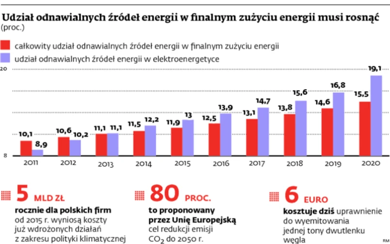 Prawo do emisji tony CO2 kosztuje ok. 6 - 7 euro i jest to przynajmniej o połowę za mało, aby w krajach opartych na węglu, takich jak Polska, na dużą skalę stymulować inwestycje w odnawialne źródła energii. Dopiero gdy koszt tony emisji przekroczy 15 euro, inwestycje proekologiczne będą bardziej opłacalne niż zakup uprawnień. Niska cena jest efektem nadpodaży uprawnień na rynku, możliwości wykorzystania obecnych nadwyżek po 2013 r. oraz zbyt pokaźnej puli już zarezerwowanej na kolejny okres rozliczeniowy, czyli lata 2013 – 2020. Aby zapobiec nadpodaży, unijni politycy poszukują rozwiązań mających wywindować cenę do poziomu, powyżej którego system handlu emisjami będzie spełniał postawione przed nim cele. Możliwości interwencji jest kilka: wycofanie lub zamrożenie pewnej ilości uprawnień przeznaczonych na kolejny okres, a także zwiększenie celu redukcyjnego z 20 do 25 proc. do 2020 r. Mimo że energetyka jest niechętna zmianom prowadzącym w kierunku zeroemisyjnej gospodarki, w dłuższym czasie jest to dla niej jedyna szansa na wdrożenie najbardziej zaawansowanych technologii i uniezależnienie się Europy od paliw kopalnych. Jeśli nie zostaną dziś podjęte działania, których celem będzie ewolucyjna transformacja gospodarek Unii Europejskiej w ciągu 30 – 50 lat, to niestety wzrost w krajach wspólnoty będzie uzależniony od polityki cenowej państw posiadających surowce.