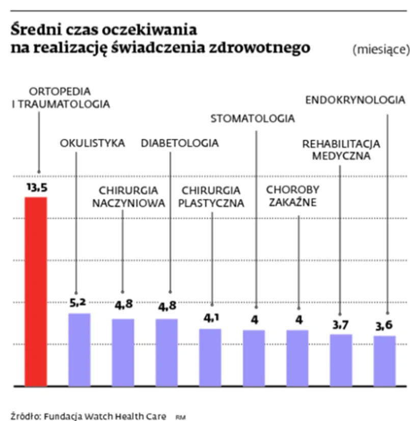 Takie terminy nie należą do rzadkości. Jak wynika z analizy przeprowadzonej przez fundację Watch Health Care, czas oczekiwania na zabieg lub wizytę u specjalisty się wydłużył się w porównaniu z zeszłym rokiem o około dwa tygodnie. W niektórych dziedzinach jednak nawet o pół roku.