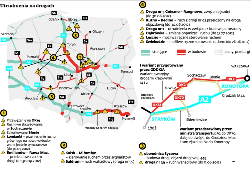 ● Trasę, szczególnie długą, planuj z wyprzedzeniem. Weź pod uwagę, że w wielu miejscach będzie obowiązywała inna organizacja ruchu. W związku z tym, chociaż warto mieć przy sobie nawigację GPS, to w czasie mistrzostw Europy nie należy bezwzględnie słuchać jej wskazówek. Producenci oprogramowania nie zaktualizowali map na czas Euro 2012, dlatego mogą one nie uwzględniać zmian na polskich drogach.