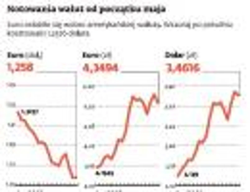 Złoty rzeczywiście zareagował na kolejną odsłonę europejskiego kryzysu i od połowy maja wyraźnie stracił wobec euro i dolara. Wczoraj umocniły go deklaracje wiceministra finansów Dominika Radziwiłła, który zapowiedział wymianę około 11 mld euro z unijnych środków bezpośrednio na rynku. Jednak nawet wczorajsze umocnienie złotego o 1 proc. względem dolara i euro nie grozi spadkiem opłacalności eksportu.