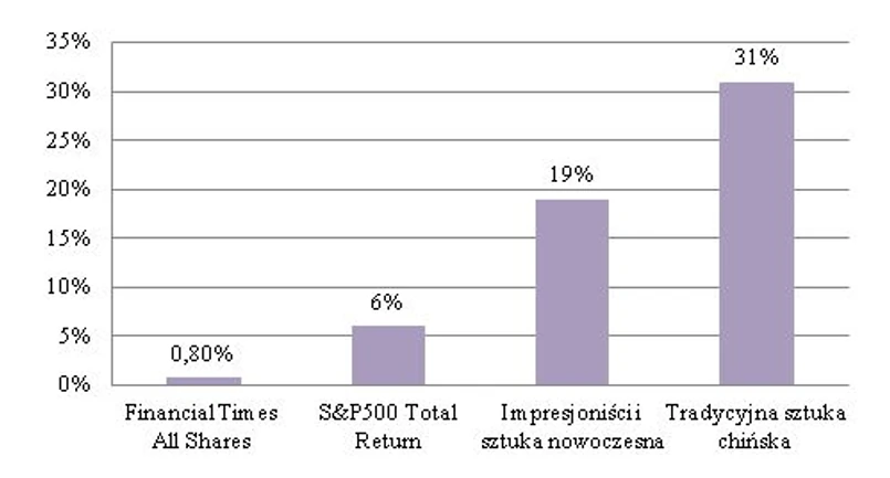 Wyniki z lat 2010-2011 pozwoliły indeksowi nieznacznie przewyższyć wynik indeksu S&P 500 Przewaga aktywów w postaci sztuki nad akcjami potwierdza wyniki badań przepro-wadzonych przez Mei i Mosesa na przestrzeni ostatnich pięciu i dziesięciu lat.