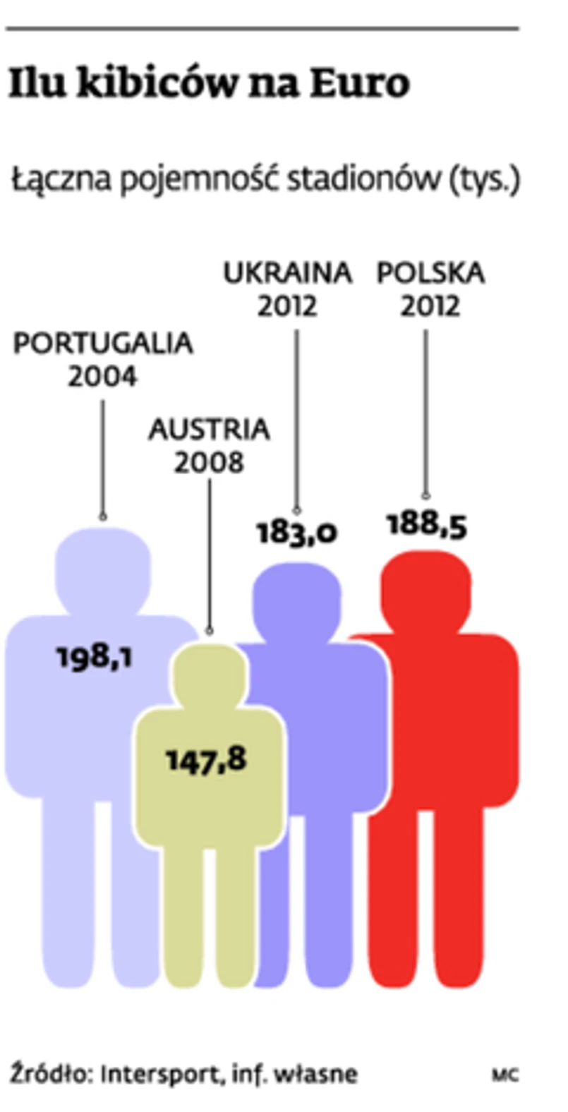 O konkretnych oczekiwaniach co do wyników sprzedażowych Iwona Książek nie chce mówić, ale podaje przykład: W Austrii, która organizowała Euro w 2008 r., na stadionach mieściło się łącznie 147,8 tys. osób, w Polsce jest to 188,5 tys. To o 30 proc. potencjalnych klientów więcej.