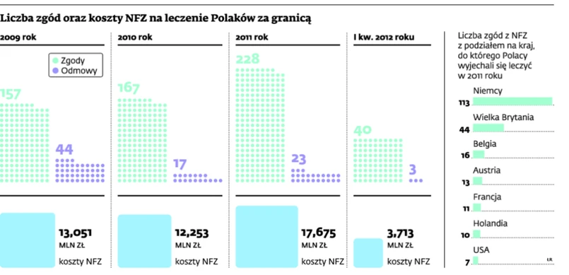 Jednak NFZ wciąż częściej odmawia zgody na leczenie za granicą, niż się zgadza. Najczęściej rzecz rozbija się o interpretację przepisu, co jest zabiegiem ratującym życie. Wiedzą o tym rodzice dzieci chorych na mukowiscydozę, którzy starają się o zgodę na przeszczep płuc za granicą. Zabieg ten w Polsce do niedawna w ogóle nie był wykonywany (pierwszy przeszczep dla chorego z mukowiscydozą został zrobiony rok temu). Niewątpliwie jest to zabieg, który może uratować życie, jednak refundacja NFZ takich przeszczepów poza Polską jest bardzo ograniczona.
