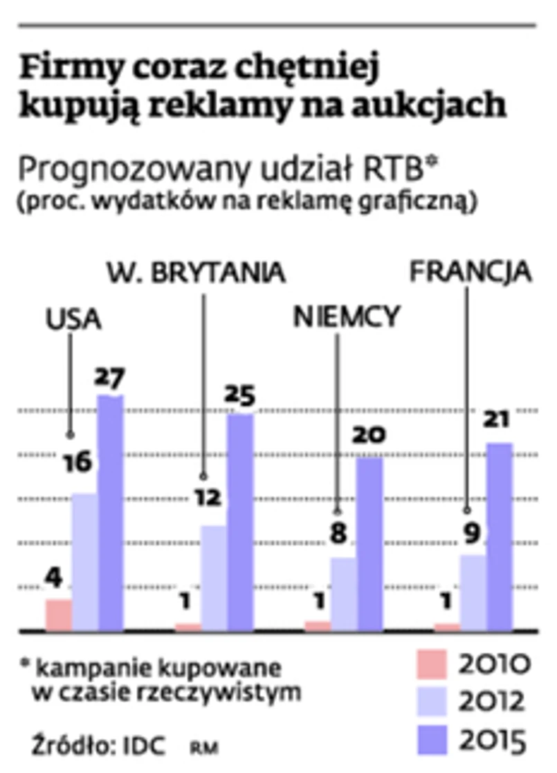 Rynek internetowej reklamy graficznej, wart rocznie 770 mln zł, czeka rewolucja. Reklamodawcy coraz chętniej kupują banery na aukcjach i gdzie płacą nie za to, że reklamę zobaczą miliony przypadkowych odbiorców, ale za to, że wyświetli się tylko zainteresowanym. Nowy model planowania kampanii – Real-Time-Bidding (RTB) – może mocno namieszać na rynku.