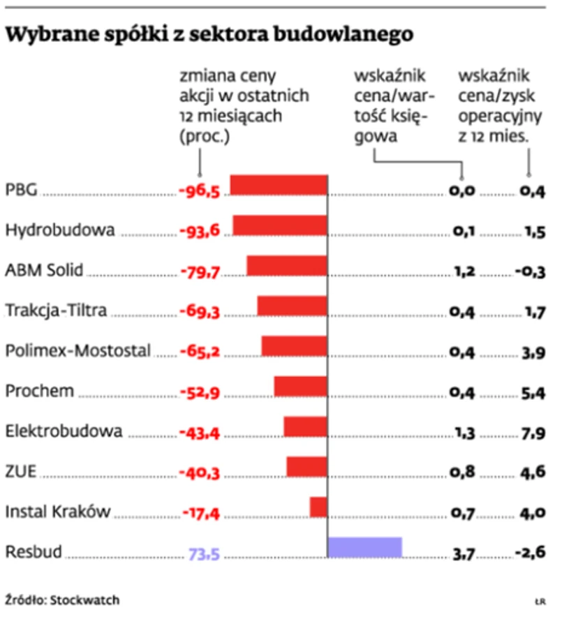 - Wyceny spółek budowlanych są rekordowo niskie, przy czym zdecydowanie tańsze i bezpieczeniejsze są małe i średnie spółki, nie zaangażowane w realizację projektów infrastrukturalnych – mówi Maciej Stokłosa, analityk DI BRE.
