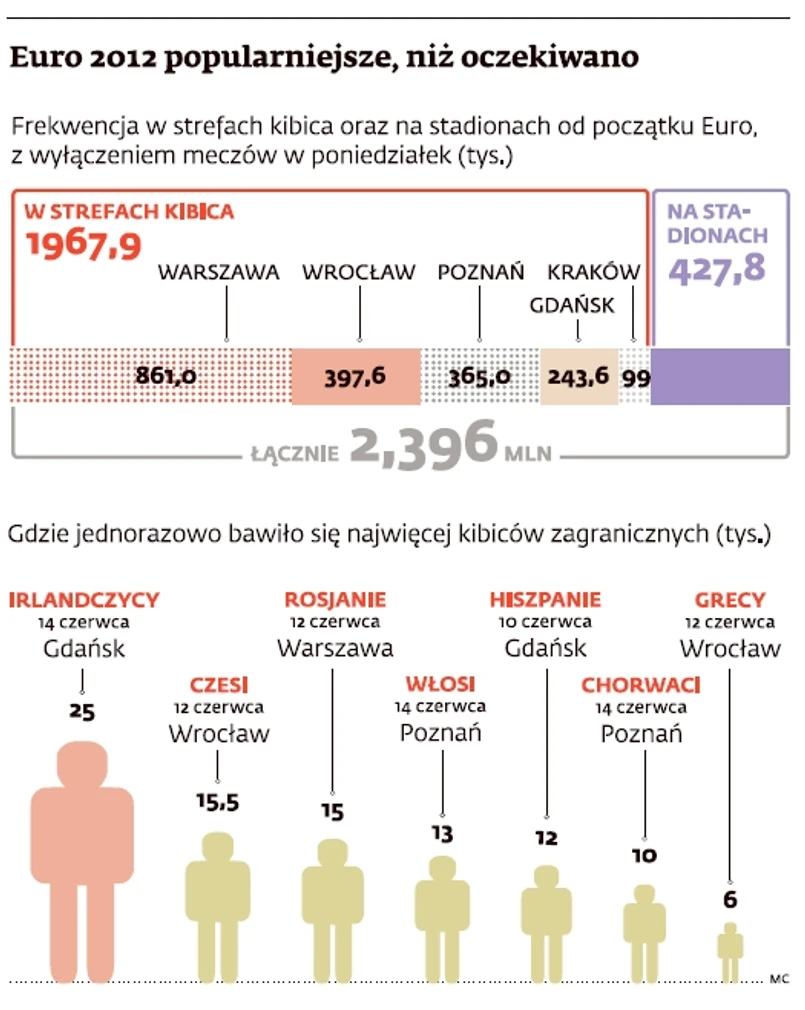 Choć mecze grup A i C tegorocznych mistrzostw Europy rozgrywane były w czterech polskich miastach – Wrocławiu, Poznaniu, Warszawie i Gdańsku – to tak naprawdę te dwa ostatnie będą największymi zwycięzcami turnieju. W każdym z nich zostanie rozegrany mecz fazy ćwierćfinałowej (21 czerwca w stolicy i 22 czerwca w Gdańsku), a Warszawa dodatkowo jest gospodarzem meczu półfinałowego – 28 czerwca. A to oznacza dalszy napływ kibiców, a wraz z nimi pieniędzy.