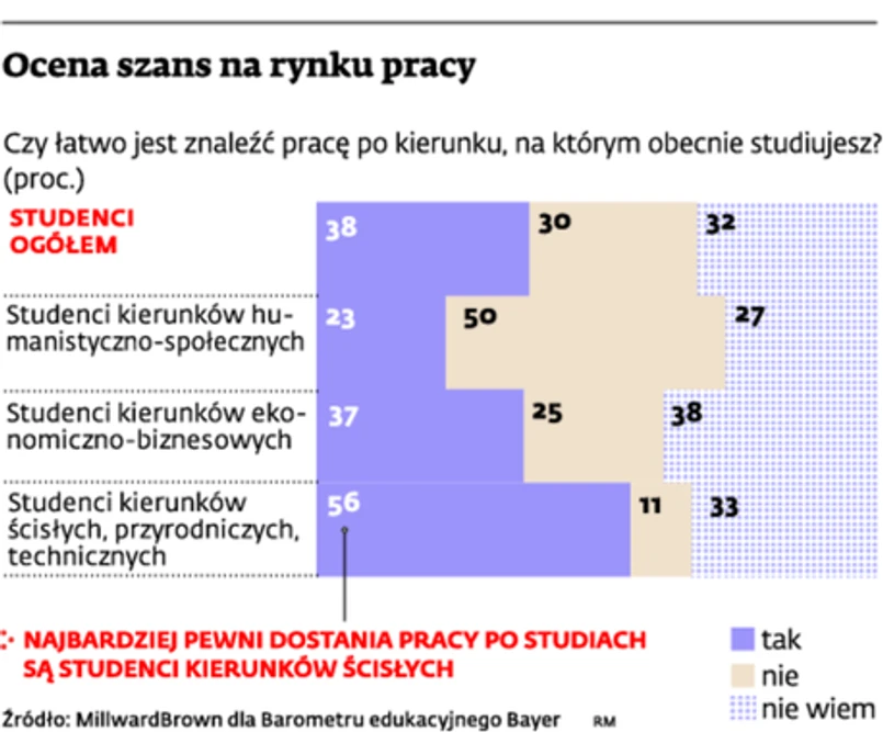 Studenci nie mają złudzeń: co trzeci przyznaje, że trudno znaleźć pracę po kierunku, który studiowali. Ale wszyscy zgodnie przyznają, że najłatwiej po kierunkach ścisłych. – To studia, które dają konkretny fach – przyznaje prof. Rocki.
