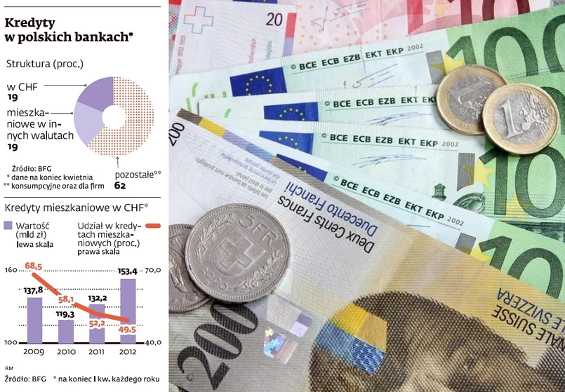 Z racji niskiego oprocentowania kilka lat temu frank był praktycznie jedyną walutą, w jakiej Polacy zaciągali kredyty hipoteczne. Wciąż blisko połowa spłacanych kredytów mieszkaniowych jest denominowana we frankach. W skali całego sektora bankowego w grę wchodzi kwota rzędu 150 mld zł. To oznacza, że banki muszą mieć odpowiednio dużo franków.