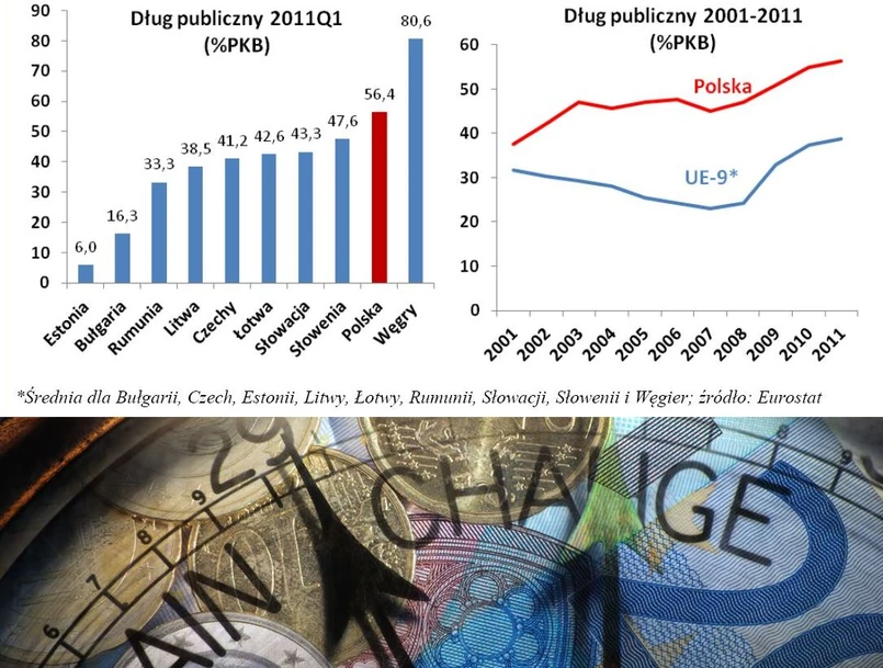 Choć na tle państw strefy euro polski dług publiczny może wydawać się niski, to w porównaniu do znajdujących się na podobnym poziomie rozwoju państw regionu jest jednak wysoki. „Wyższy dług publiczny w relacji do PKB mają tylko Węgry, które w 2008 roku były zmuszone zwrócić się o pomoc do Międzynarodowego Funduszu Walutowego oraz Komisji Europejskiej. Obecnie nie można wykluczyć potrzeby kolejnego pakietu pomocowego dla Węgier” – pisze Aleksander Łaszek, ekonomista Forum Obywatelskiego Rozwoju w raporcie.