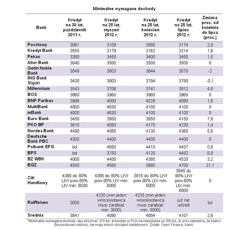 Od kwietnia do lipca 12 na 20 banków zwiększyło klientom minimalne wymagania dochodowe. Nie ma wątpliwości, że wiosenny chwilowy spadek oczekiwań w większości instytucji okazał się incydentem. Osoby planujące zaciągnięcie kredytu mieszkaniowego powinny liczyć się z podwyższaniem poprzeczki, a luzowanie wymagań traktować jako chwilową okazję.