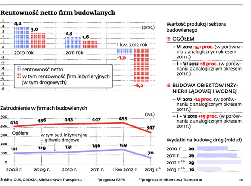 W budownictwie drogowym zatrudnionych jest prawie 160 tys. ludzi. Niektóre spółki biorą kontrakty z ujemną marżą na przetrwanie – żeby znaleźć zastosowanie dla ludzi i sprzętu.